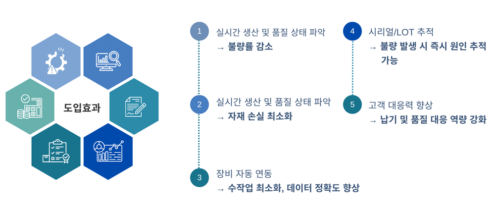 - 원자재 LOT~완제품 까지 전 공정 이력 추적