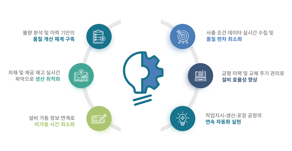 사출, 금형, 플라스틱 산업군은 정밀 금형 설계, 사출조건 온도,압력, 사출성형, 다품종 소량생산, 금형 및 원재료의 품질이 매우 중요한 산업입니다. MES 도입 시에는 금형관리, 설비 인터페이스, 불량분석, 금형 교환 이력, 실적 정확성이 핵심 기능으로 요구됩니다.